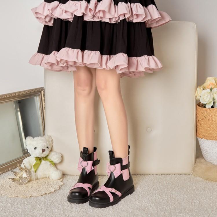 Japanese Short Boots Bowknot Side Zipper Sweet Student Pink Cute Carved Martin Boots