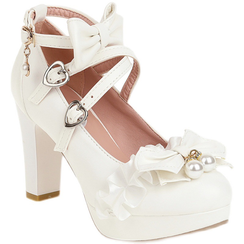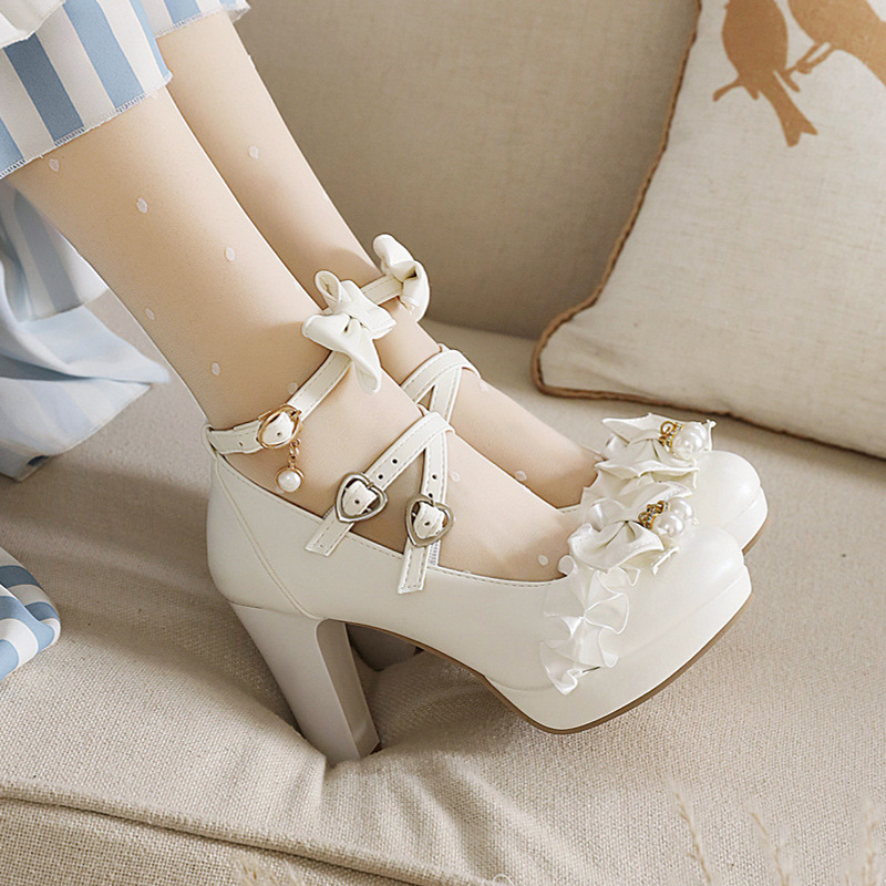 Sweet Princess Single Shoes Bow All-match Thick Heel High Heels