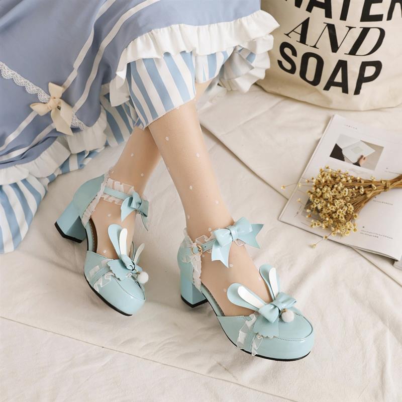 Cute Kawaii Rabbit Ears Shoes With Bow Fairy Sweet Girl Shoes