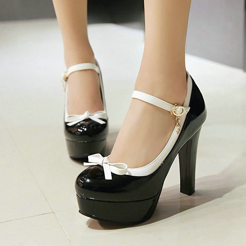 Leather Lace Buckle Girl Shoes Fashion Thick With Bow All-match High Heels