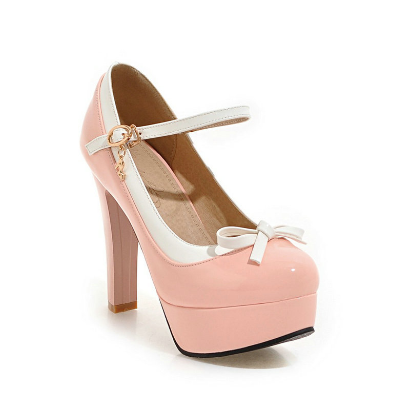 High-heeled Bow Buckle With Pink Single Shoes All-match Princess Shoes