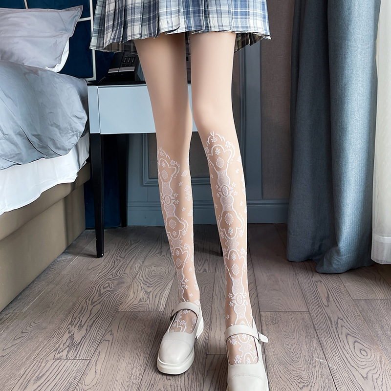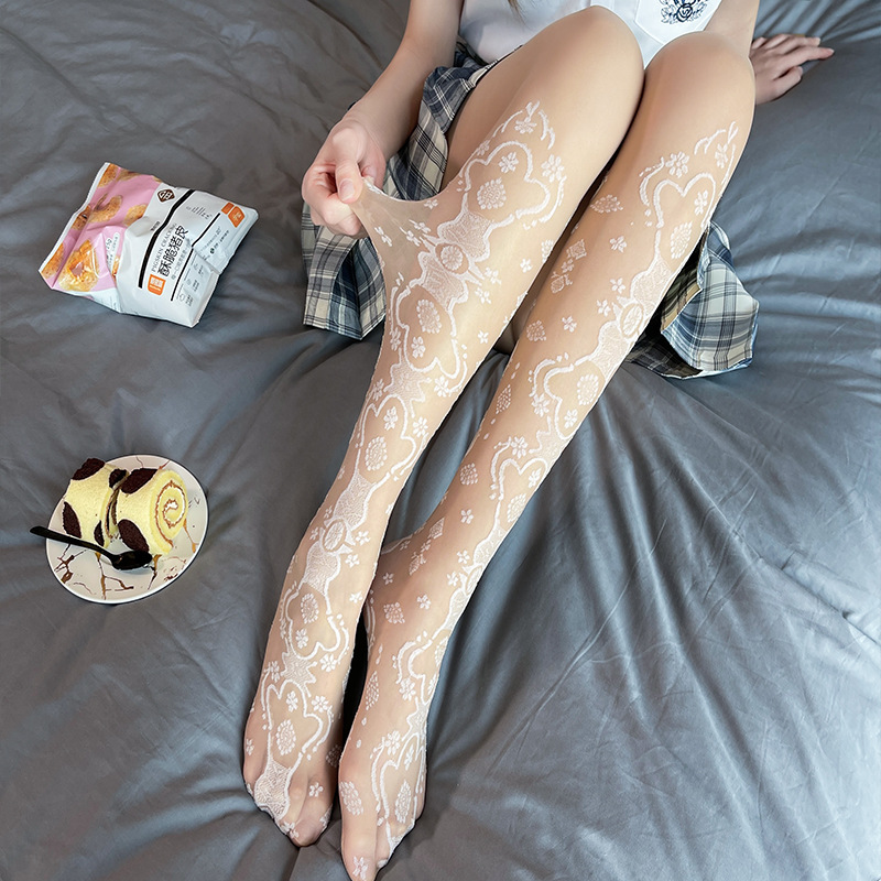 Japanese Sweet Stockings Milky White Stitching Jacquard Over-the-knee Bottoming Pantyhose