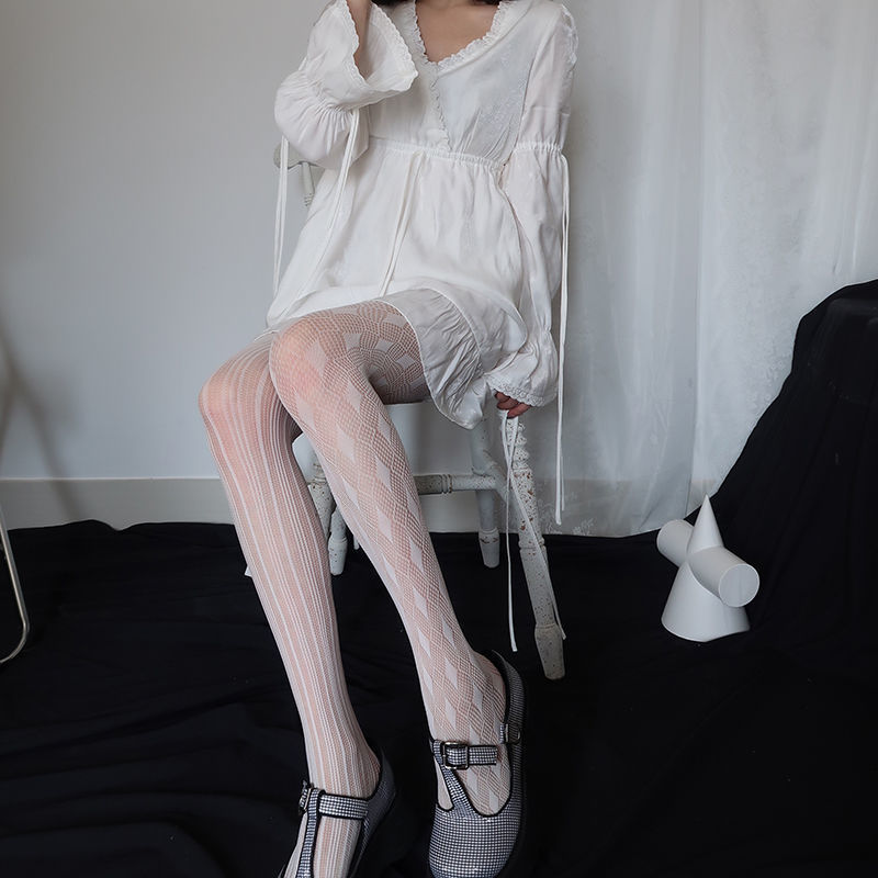 Sweet And Cool Dark White Black Stockings Pantyhose White Lace Stockings