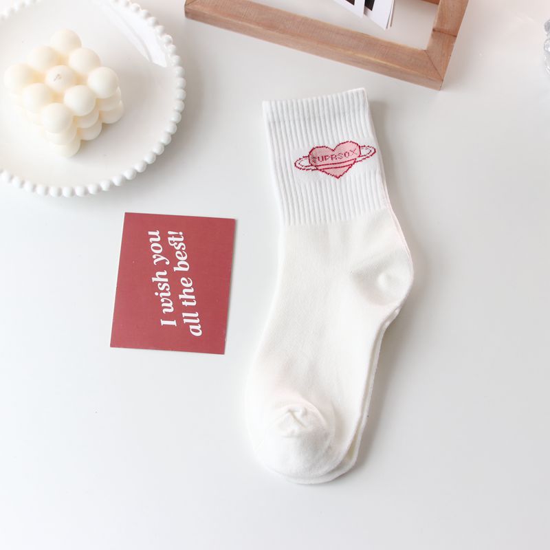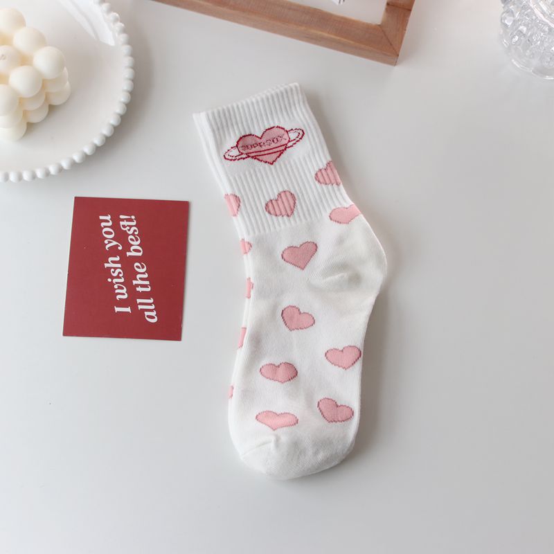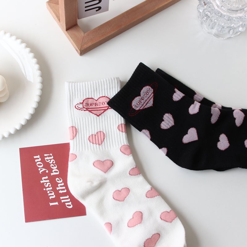 Korean Socks Middle Tube Tide Love Japanese Cute Student White Jk Net Red Stockings