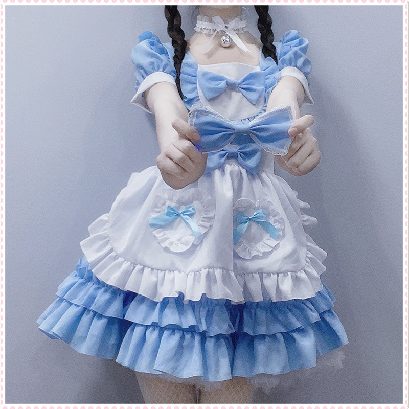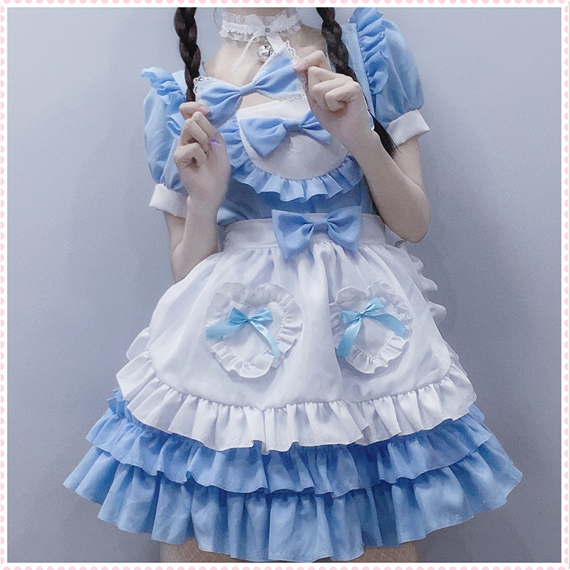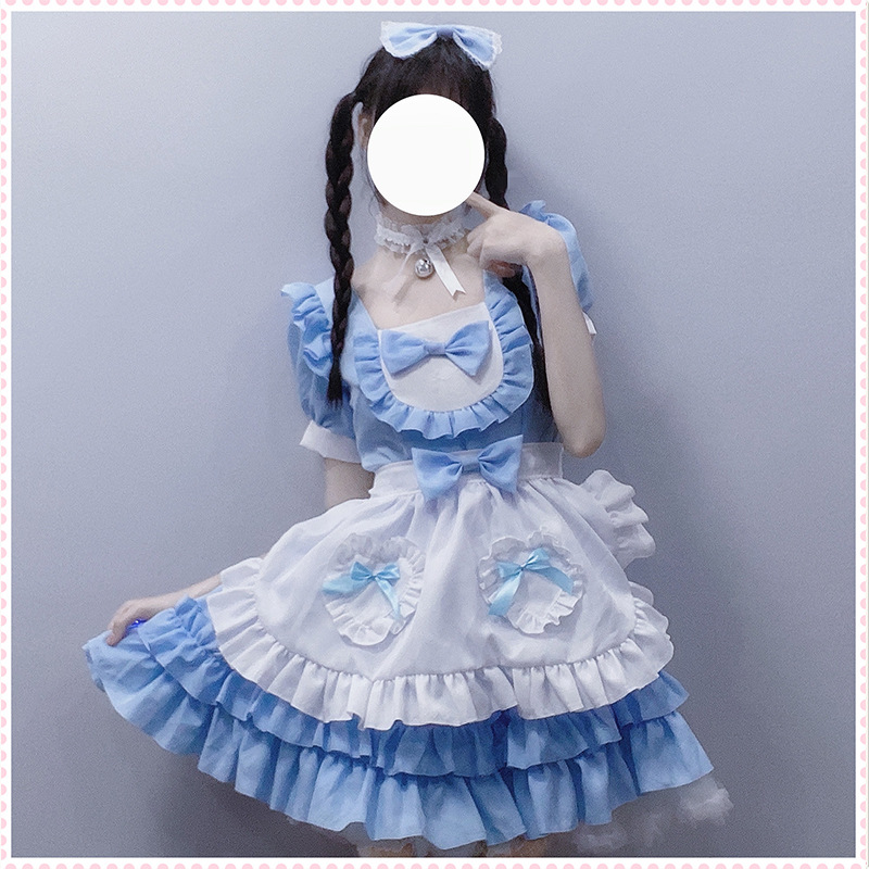 Japanese Sexy Cream Little Sweetheart Maid Outfit Blue Pure Dress