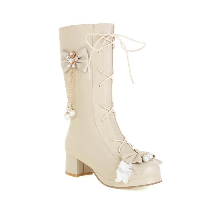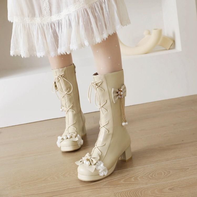 Student Japanese Mid-tube Boots High-heeled Jk Uniform Shoes Fairy Cos Bow Boots
