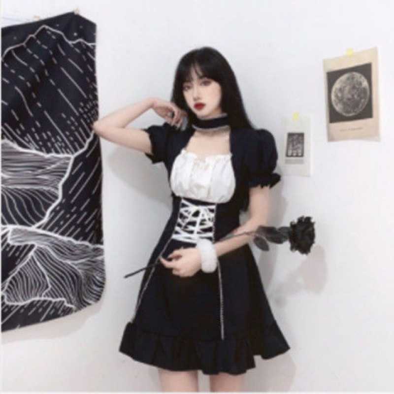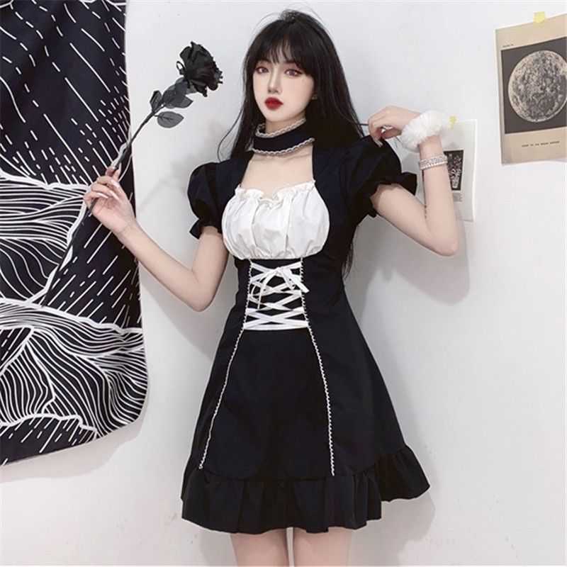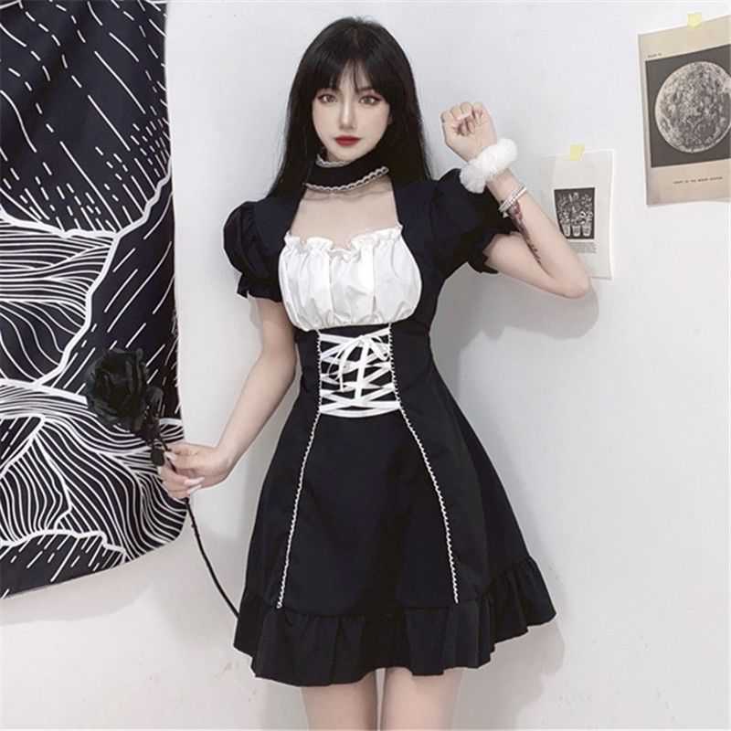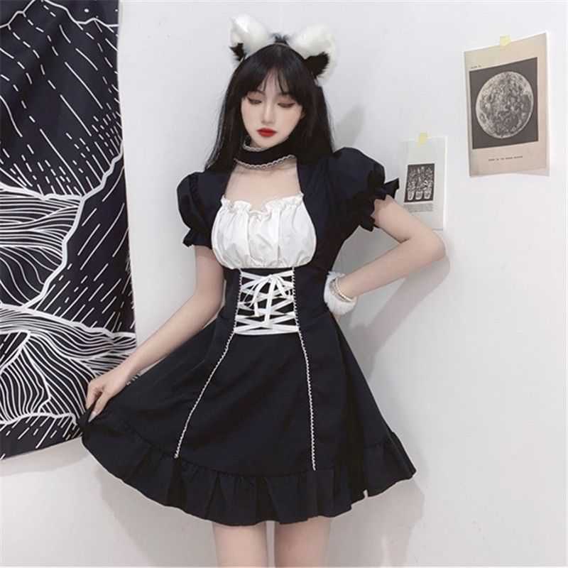 Japanese Puff Sleeve Dress Maid Outfit Cute College Style Brother-style Little Black Dress