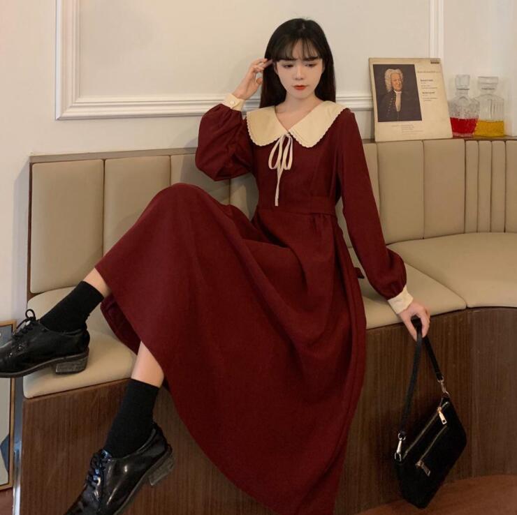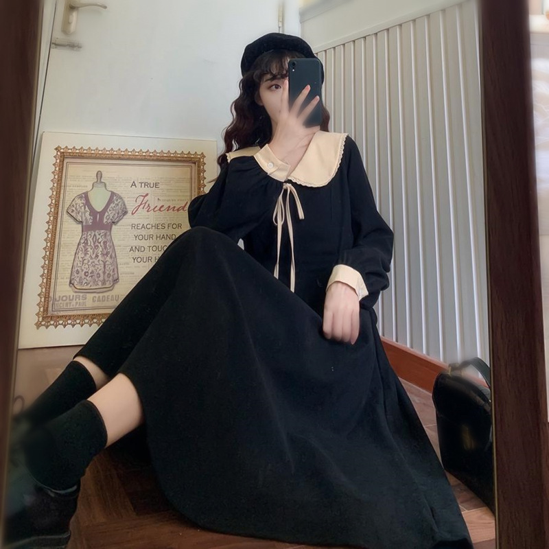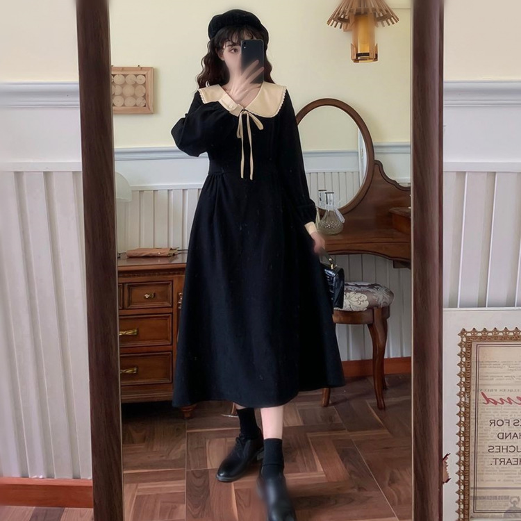 Long-sleeved Bottoming Dress Doll Collar Soft Girl Small Dress Sweet Mid-length Skirt