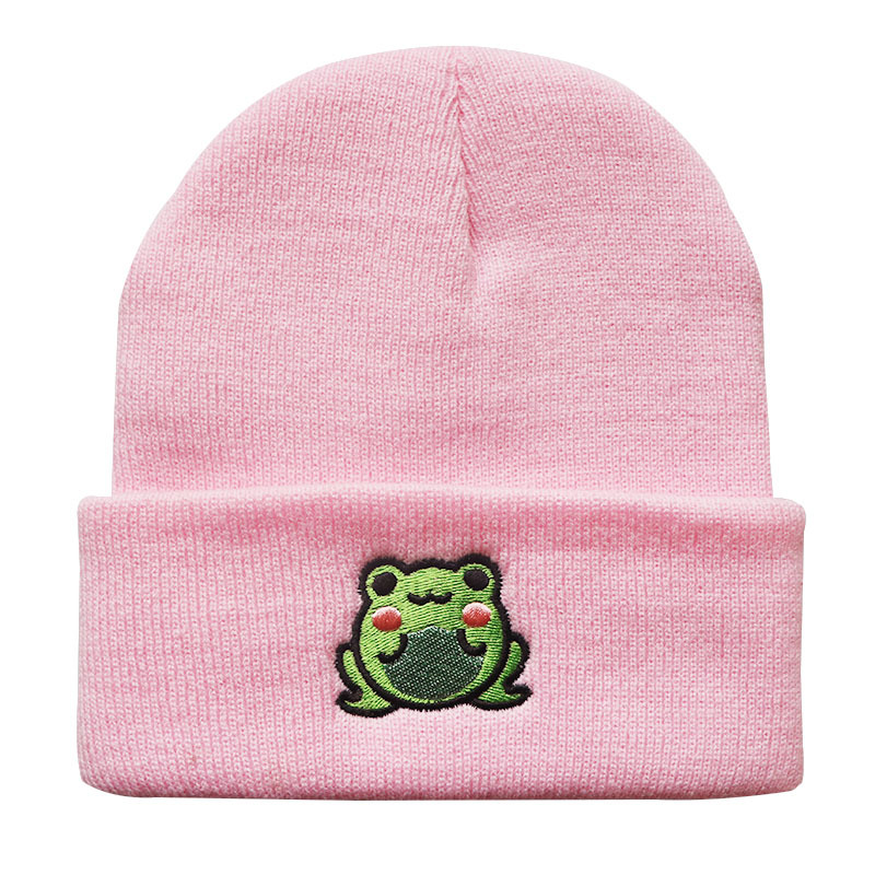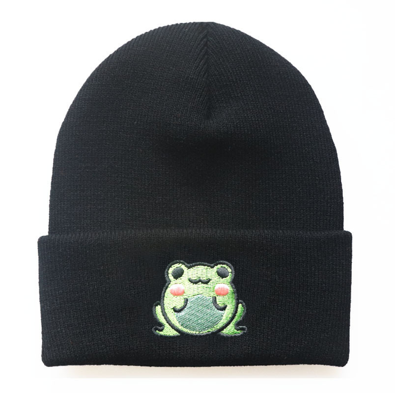 Cute Cartoon Froggie Woolen Hat Frog Embroidery Knit Hat Student Hedging Warm Cold Hat For Men And Women