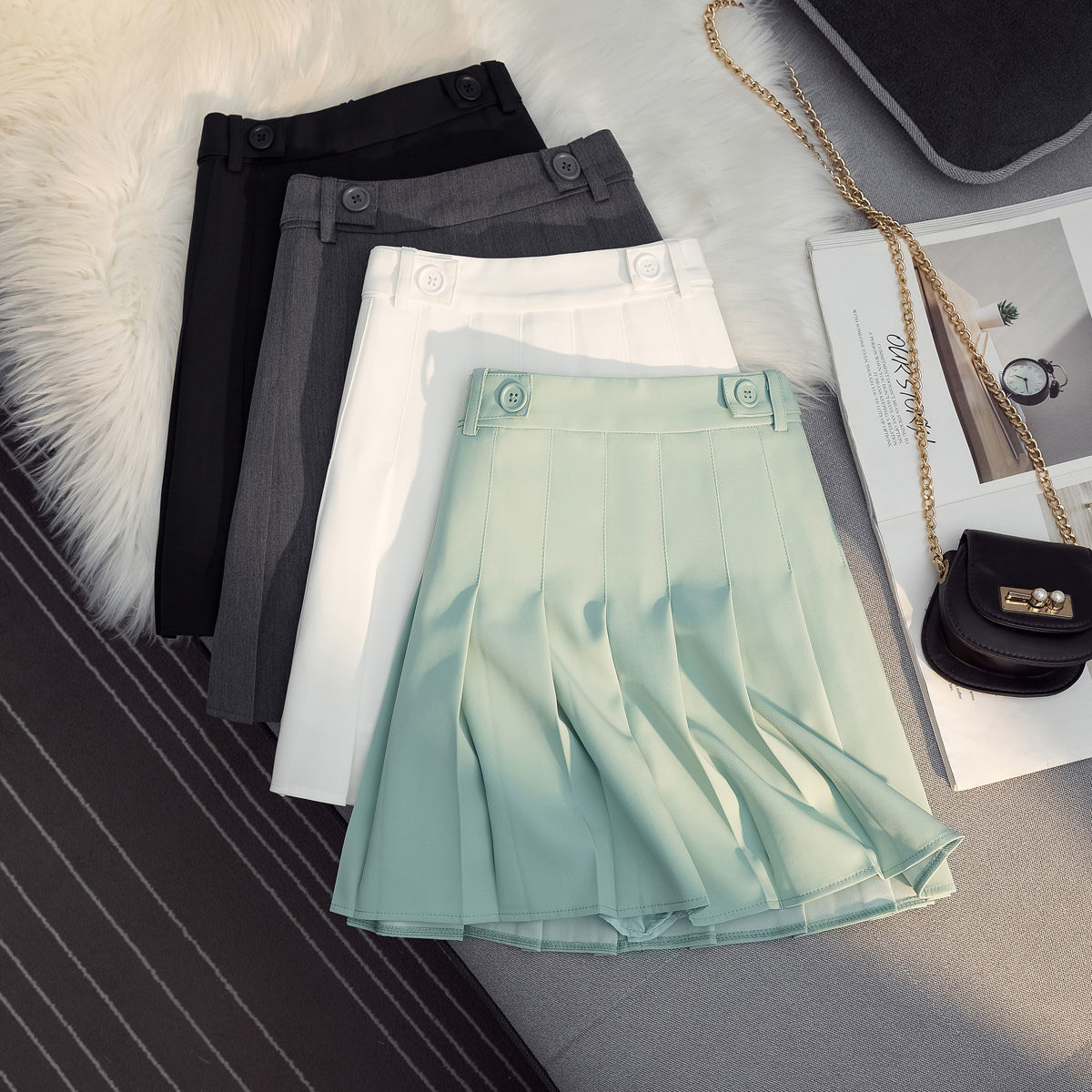 Pleated High Waist Anti-failure Small Black A-line Short Skirt